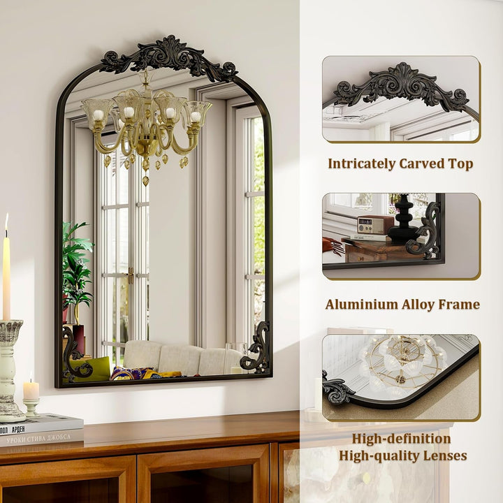 Transform your space with a timeless arched mirror that blends vintage charm with modern clarity. The 36x24 inch Arched Baroque Wall-Mounted Mirror in matte black brings sophisticated elegance to bathrooms, bedrooms, or dressing areas while delivering a crystal-clear reflection for daily grooming.