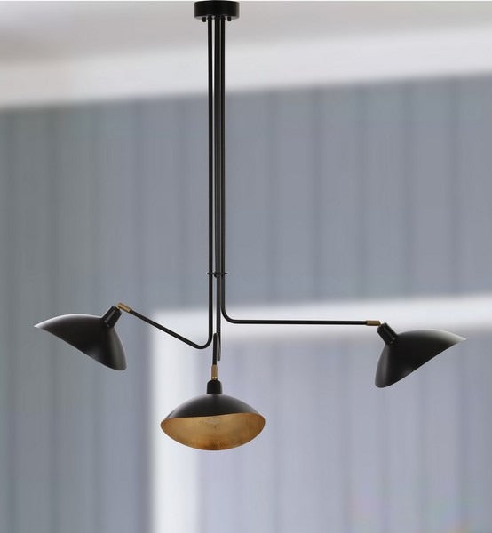 Elevate your space with the Bianka Pendant Light, a designer-favorite fixture that combines sculptural form with refined elegance. Three black metal pendants with luxe gold leaf interiors create a striking focal point, casting a warm, inviting glow across dining rooms, living areas, and entryways. The interplay of matte black and gleaming gold delivers modern sophistication with artisanal character. Each pendant measures 10.125" W × 11.25" L × 4.875" H, with adjustable cord length for customized hanging heights. Accommodates three E26 bulbs (60w max each) for 830 lumens of ambient light. A statement piece that rewards close inspection and transforms any room into a curated gallery.