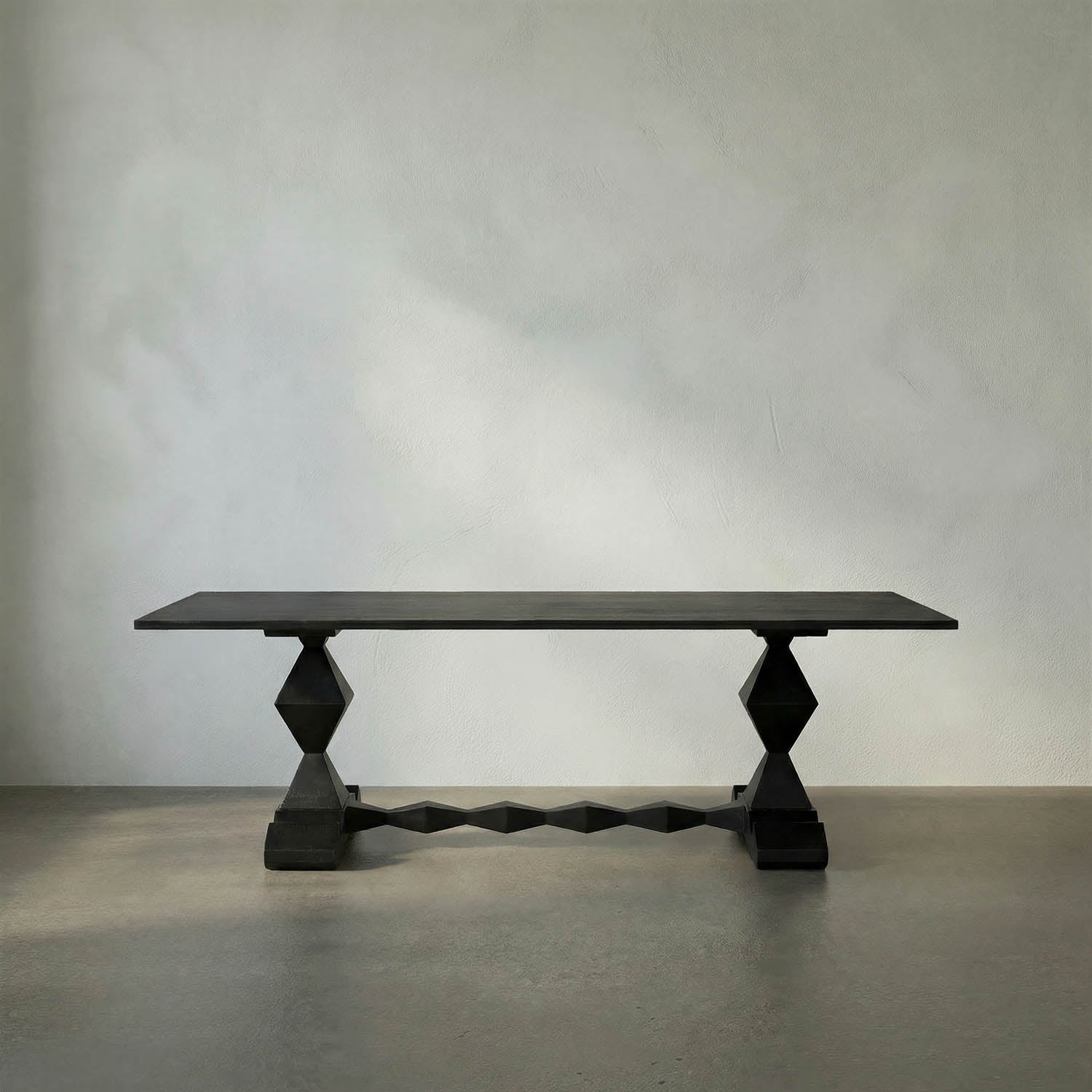 The Bergamo Dining Table brings bold, sculptural form to the heart of the dining space. Defined by its faceted, totem-inspired base, it introduces architectural depth and visual rhythm—transforming a traditional table into a striking design statement.