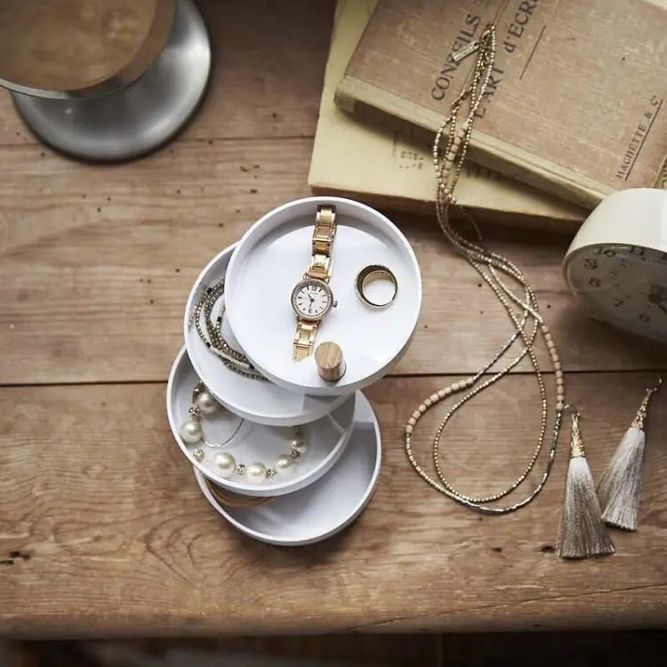 With its four-layer design, this organizer allows for neat and organized placement of your jewelry, keeping them safe from damage while remaining easily accessible. Say goodbye to tangled necklaces and lost earrings!