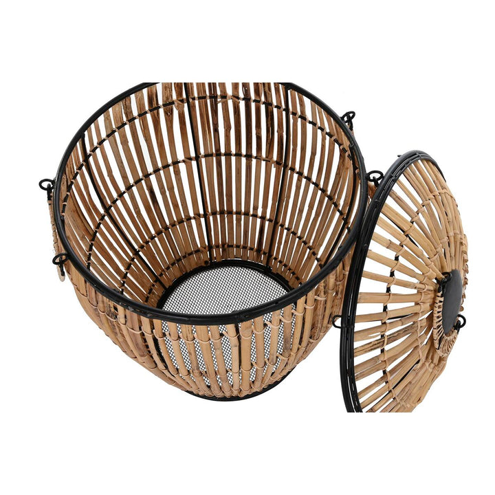 Set of Baskets DKD Home Decor Black Natural Metal Rattan 48 x 48 x 55 cm (2 Units)