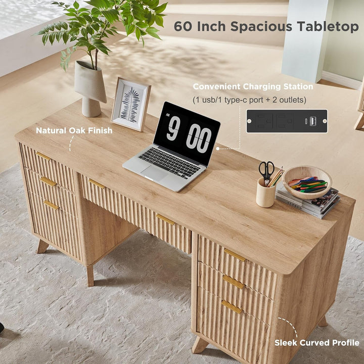 Envision a calmer, more productive workspace where everything has its place, technology is efficiently powered, and you can focus on the task at hand. This 60-inch fluted desk bridges contemporary style with practical functionality to elevate your home office experience.