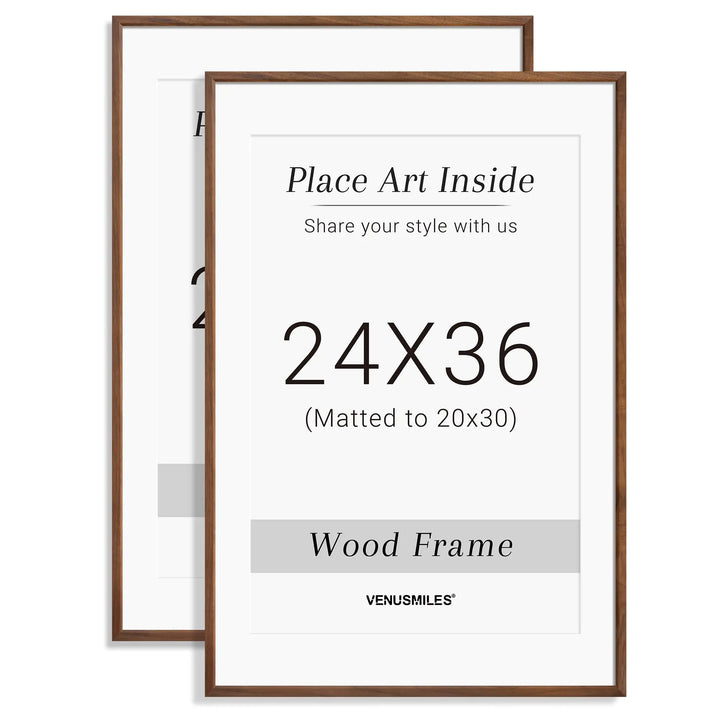 Venusmiles 24x36 Poster Frame Set of 2 Natural Solid Walnut Photo Frames with 20x30 Removable Mat Wall Hanging Large Handcrafted Frame with HD Plexiglass Wall and Tabletop Display Large Picture Frame